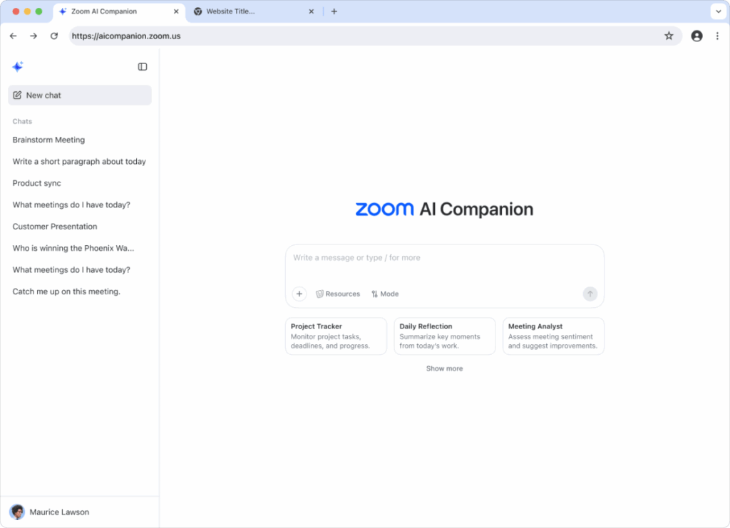 Hơn nữa, Zoom đang ra mắt giao diện web được nâng cấp để có sự đồng hành của AI nổi bật hơn và các tính năng được hỗ trợ bởi AI khác như trợ lý viết để soạn thảo email và tài liệu, và một tính năng nghiên cứu sâu, đang được thêm vào.